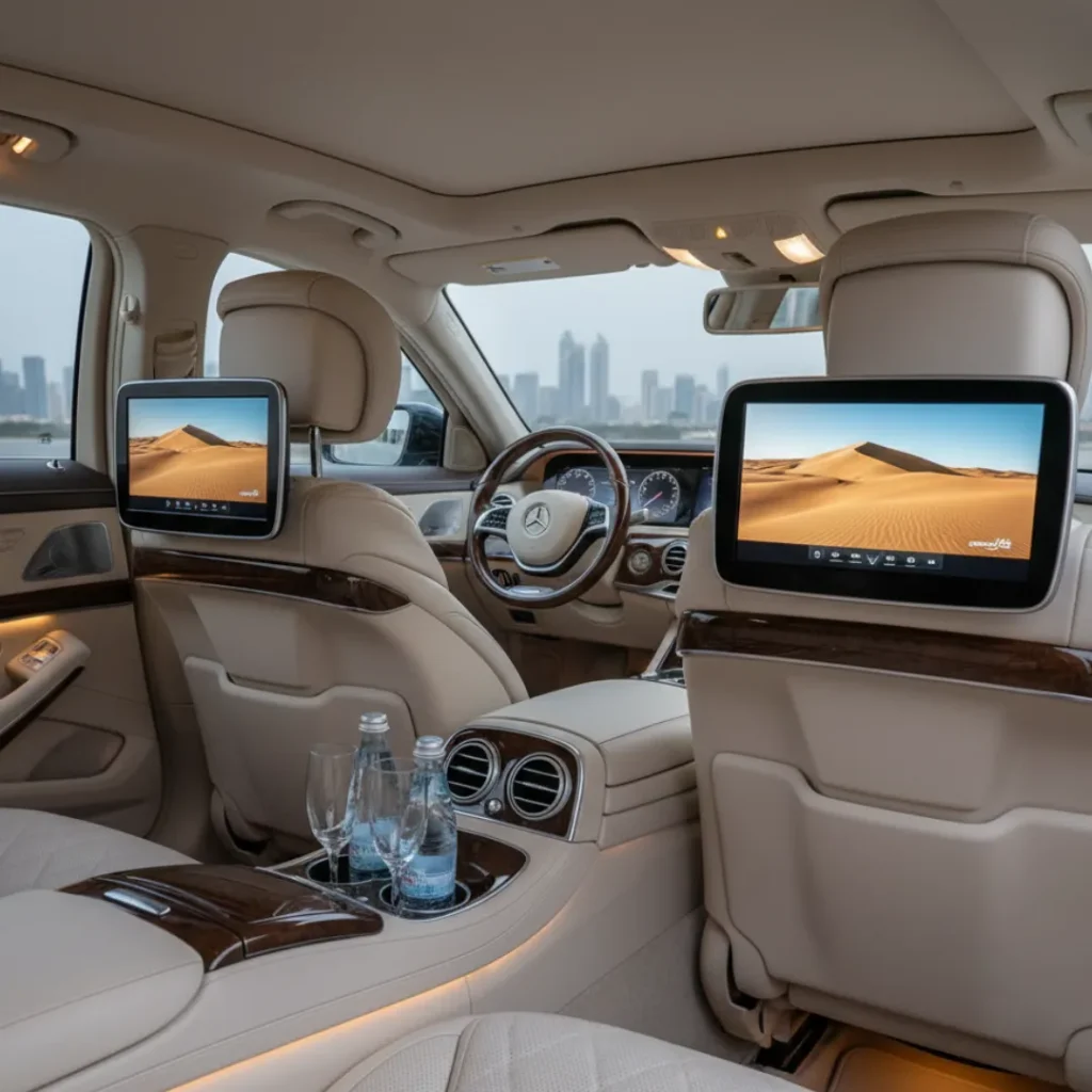 Personalized On-Board ExperienceEvery vehicle is equipped with premium bottled water and charging facilities for all devices. Wi-Fi, specific newspapers, or other amenities can be arranged upon request.