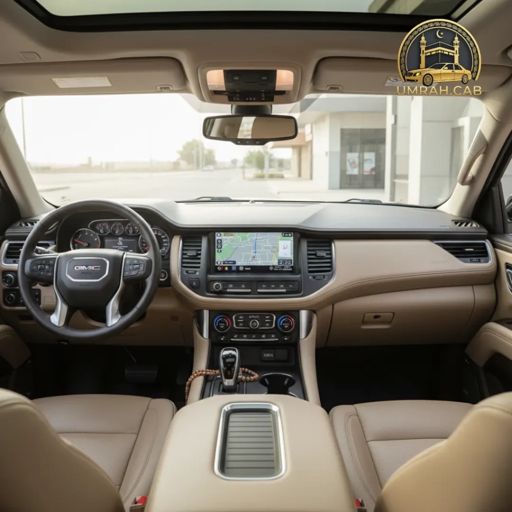 Umrah.cab specializes in providing a premium fleet of full-size SUVs for every leg of your Umrah journey. We offer a spacious, comfortable, and superior travel experience, allowing you and your family to focus entirely on your Ibadah (worship).