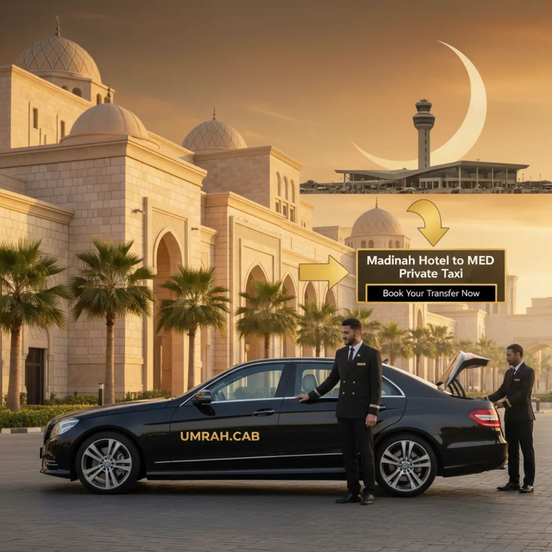 Umrah.cab offers a professional, door-to-door taxi service from your hotel in Madinah directly to Prince Mohammad Bin Abdulaziz International Airport (MED). As a locally registered company based in Madinah, we guarantee punctuality and reliability, ensuring you arrive at the airport relaxed and ready for your flight.