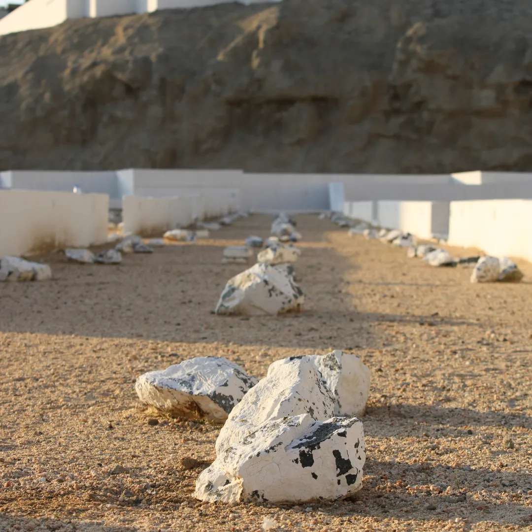 Appearance TodayToday, the cemetery is a walled enclosure. The graves are marked only by simple, uncut rocks or mounds of earth. There are no headstones with names or dates.