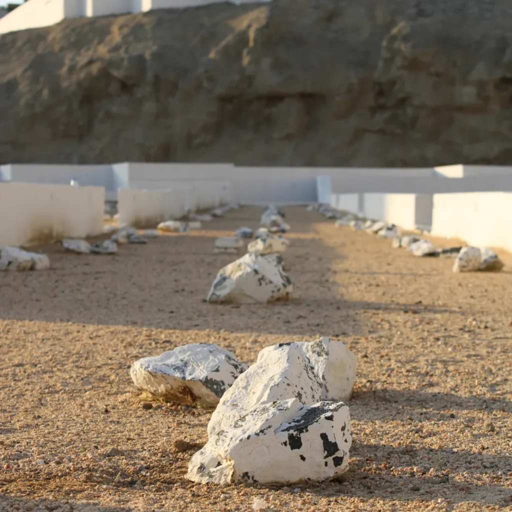 Appearance TodayToday, the cemetery is a walled enclosure. The graves are marked only by simple, uncut rocks or mounds of earth. There are no headstones with names or dates.