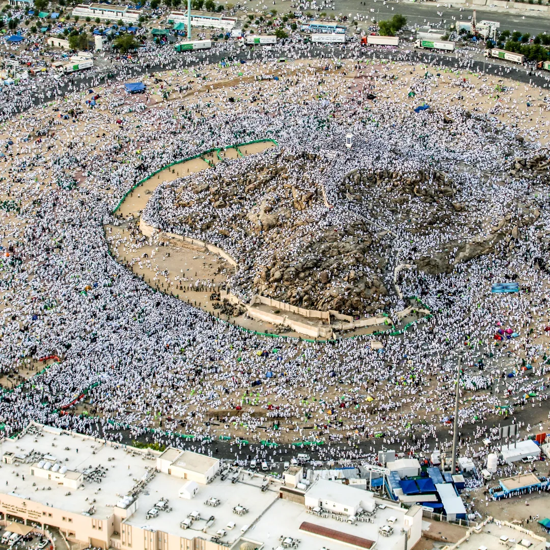 Jabal ar-Rahmah (The Mount of Mercy)This small, rocky hill is the most prominent landmark in Arafat. It is believed to be the spot where the Prophet (PBUH) stood to deliver his sermon.